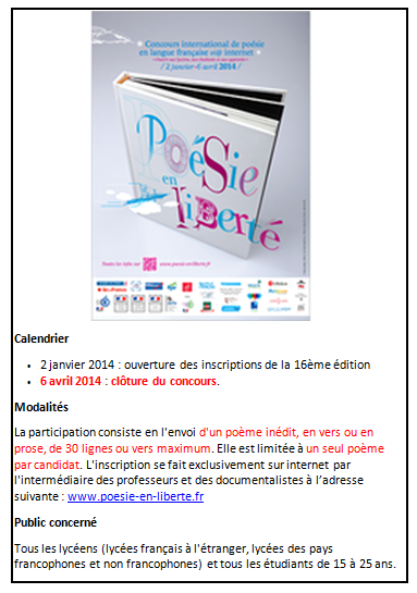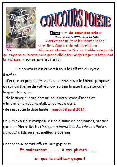 Résultats du concours de poésie 2014 au lycée George SAND