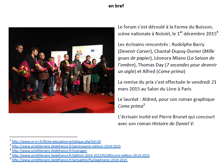 Le projet a abouti à une exposition des élèves sur les diverses lectures et rencontres à la Journée Portes Ouvertes au CDI le samedi 2 avril 2016.