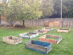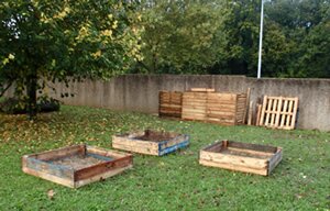 M. LE PERFF, professeur à l'initiative du projet, a réalisé avec l'aide de plusieurs collègues des composteurs, des carrés et des jardinières pour accueillir les plantations.